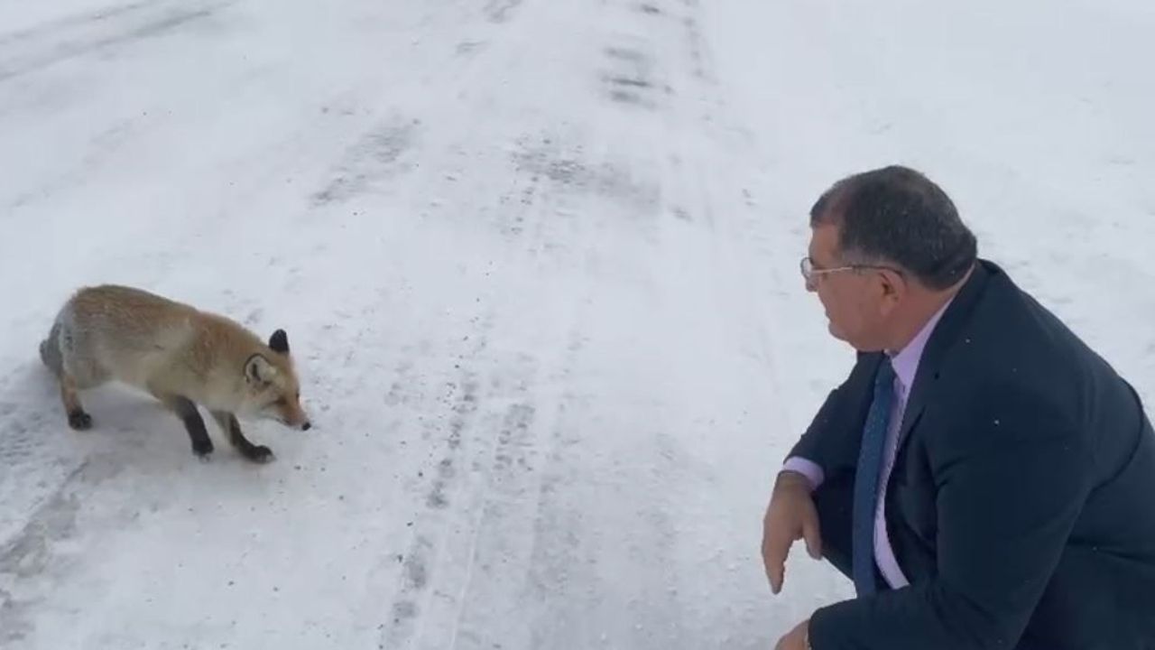 Artvin'in Şavşat ilçesinde Belediye Başkanı Durmuş Aydın, Sahara Geçidi'nde aracıyla seyir halindeyken karlı yolda bir tilkiyle karşılaştı. Yoğun kar yağışının etkili olduğu bölgede yol kenarında duran tilkiyi fark eden Aydın, aracını durdurarak aşağı indi. Soğuk hava ve kar nedeniyle yiyecek bulmakta zorlandığı değerlendirilen tilkiye yiyecek veren Başkan Aydın, hayvanla bir süre ilgilendi. Başkan Aydın'ın tilkiye, 'Sen ne güzelsin, ne güzel yüzün var. Görüşürüz bay bay' diyerek seslenmesi dikkat çekti.