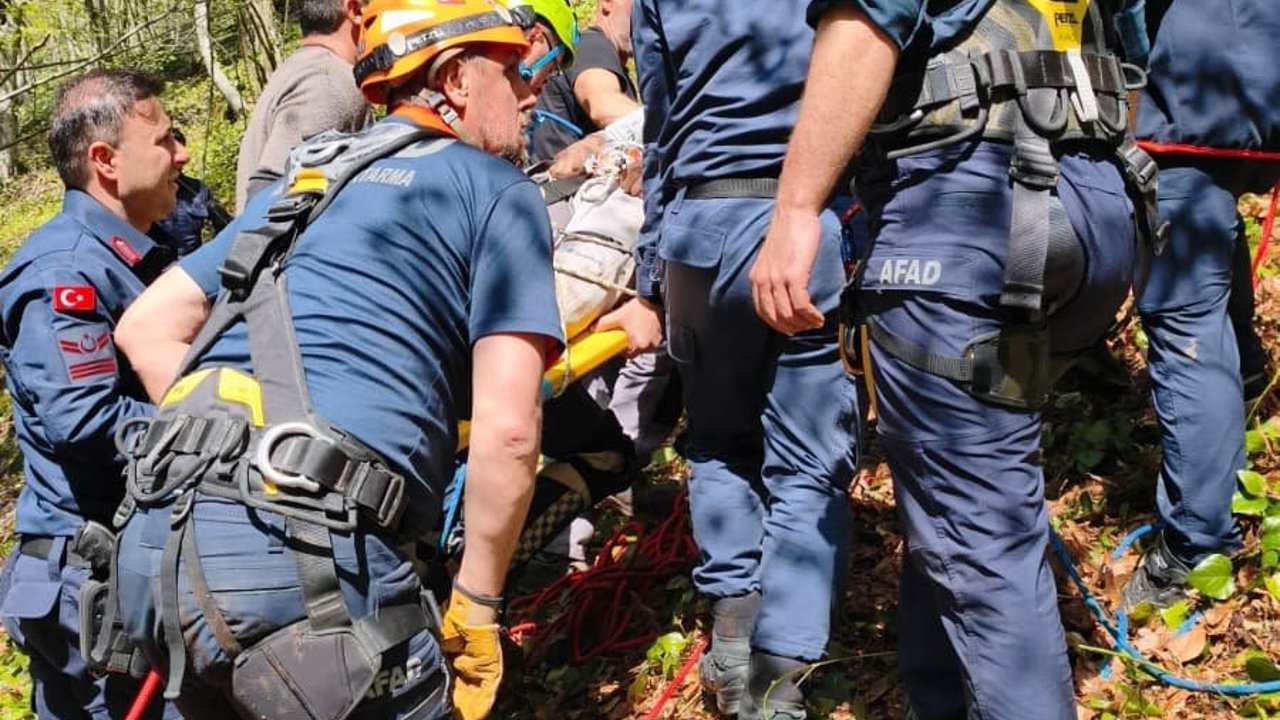 AFAD ekipleri, bilinci açık ve ayağında kırık olan yaralıyı bulunduğu yerden ipli istasyon sistemiyle çıkardı.