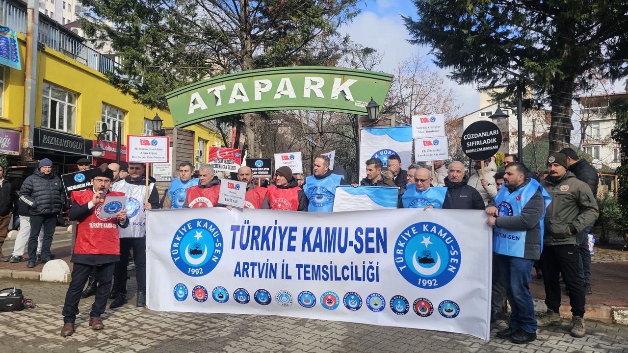 Basın açıklamasını okuyan Türkiye Kamu-Sen Artvin İl Başkanı Sinan Okan, soğuk havaya rağmen alana gelen basın mensuplarına ve kamu çalışanlarına teşekkür ederek konuşmasına başladı.