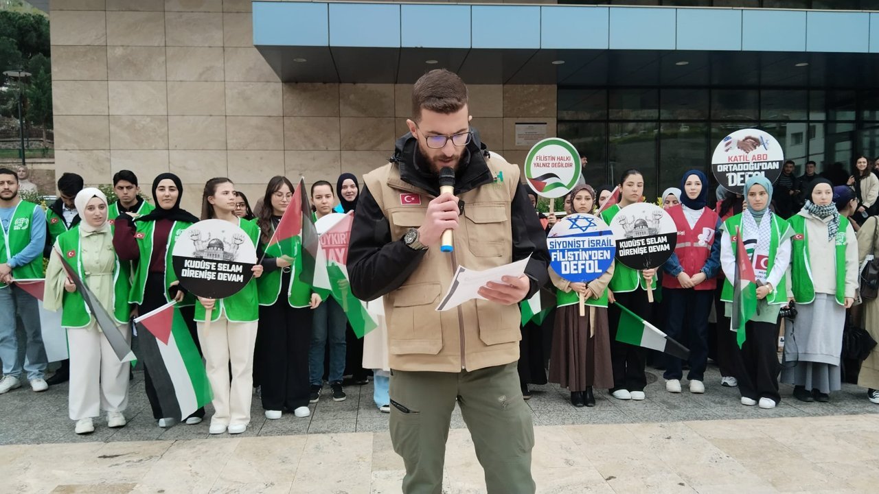 "Dünya Siyonizmden Kurtulacak" sloganıyla düzenlenen etkinlikte; ADEM, Genç İHH, Türk Kızılay Genç, ÜniAK ve çok sayıda öğrenci topluluğu saf tuttu.