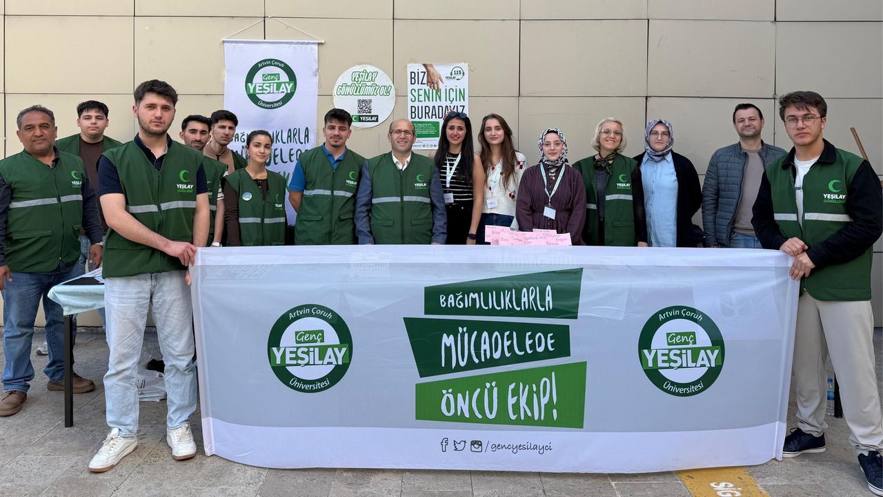 Etkinlik kapsamında üniversite öğrencileriyle bir araya gelen gönüllüler, Yeşilay’ın bağımlılıkla mücadele alanındaki çalışmaları hakkında bilgilendirmelerde bulundu.